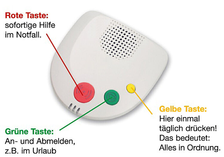 Der Funk-Bewegungsmelder wird innerhalb Ihrer Wohnung an einem Platz installiert, an dem Sie sich im Alltag besonders oft oder regelmäßig aufhalten. Immer dann, wenn der Melder eine Bewegung registriert, wird die Sicherheitsuhr Ihres Hausnotrufgerätes zurückgesetzt. Geschieht dies nicht, werden Sie von Ihrer Zentrale angerufen - und sollten wir Sie nicht erreichen, wird sofort Hilfe geschickt.